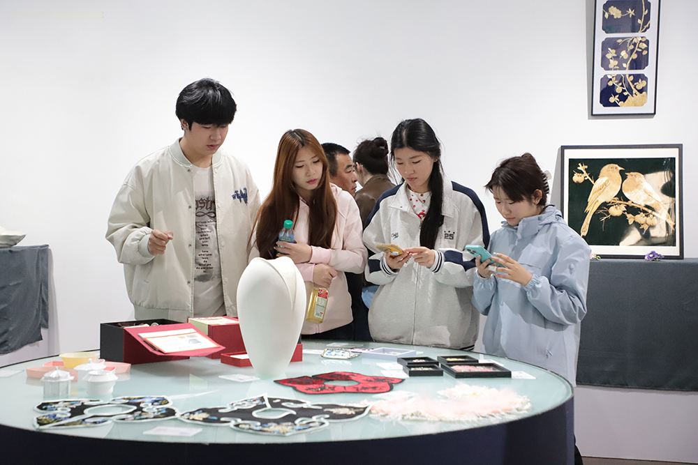 河北省美术家协会副主席、保定市文联主席、河北大学艺术学院副院长李文岗,以及容城县委宣传部部长陈丽分别对展览的成功举办表示祝贺并致辞。两位嘉宾从学术高度与实践维度,一致肯定了本次展览对服务雄安新区发展、探索美育社会服务新模式的重要意义。展览既集中展现了河北工艺美术职业学院的教学创作实力,又以校地合作为纽带,将工美艺术融入雄安新区文化建设与城市美学营造,是艺术高职院校服务国家重大战略、助力区域文化繁荣的生动实践。