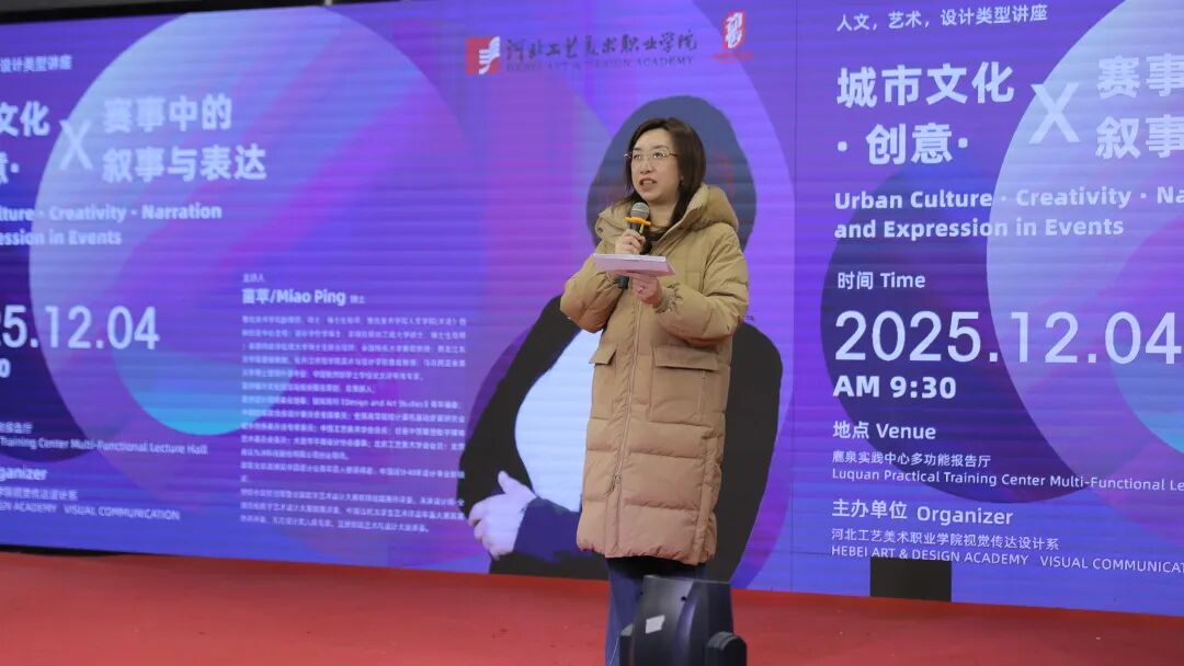 本次讲座“城市文化·创意·赛事中的叙事与表达”从城市文化的设计实践出发,深入探讨城市视觉传播在当代语境下的创意表达与文化建构。讲座内容根据苗苹博士设计实践出发,阐述“亚洲城市文化国际海报展”的创办背景与发展历程,指出该展览以“城市文化”为核心议题,旨在通过视觉设计语言呈现多元亚洲城市在历史、空间与社会结构中的文化记忆与精神风貌。通过对参展作品的范式研究,发现当代城市文化设计正逐渐形成以叙事逻辑为核心、以创意实践为驱动的表达体系,为设计教育、文化传播及国际交流提供了新的研究视角与实践路径。
