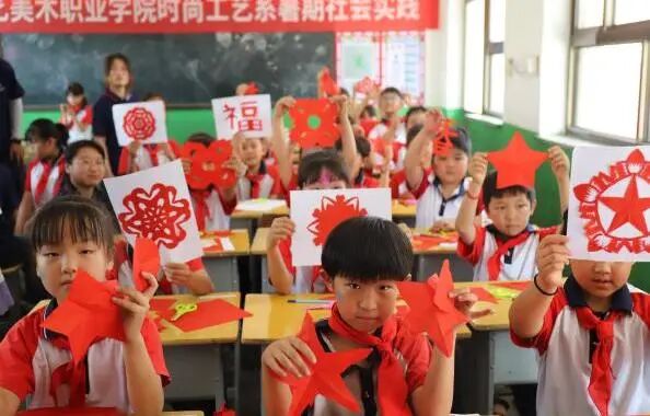 实践小分队走进孟家庄小学开展“美育润童心”主题支教活动,将非遗传承与创意美育有机融合。团队精心设计了系列艺术课程:剪纸课上,孩子们巧手剪出五角星和窗花;创意手工环节,扭扭棒变身红色灯笼和花朵;服装设计课上,色彩鲜明的汉服跃然人台;彩绘课堂中,专业学生指导完成童趣面绘;陶艺制作时,孩子们用陶土塑出心中的美好。通过多元美育活动,队员们以专业助力乡村教育,让艺术的种子在孩子们心中生根发芽。